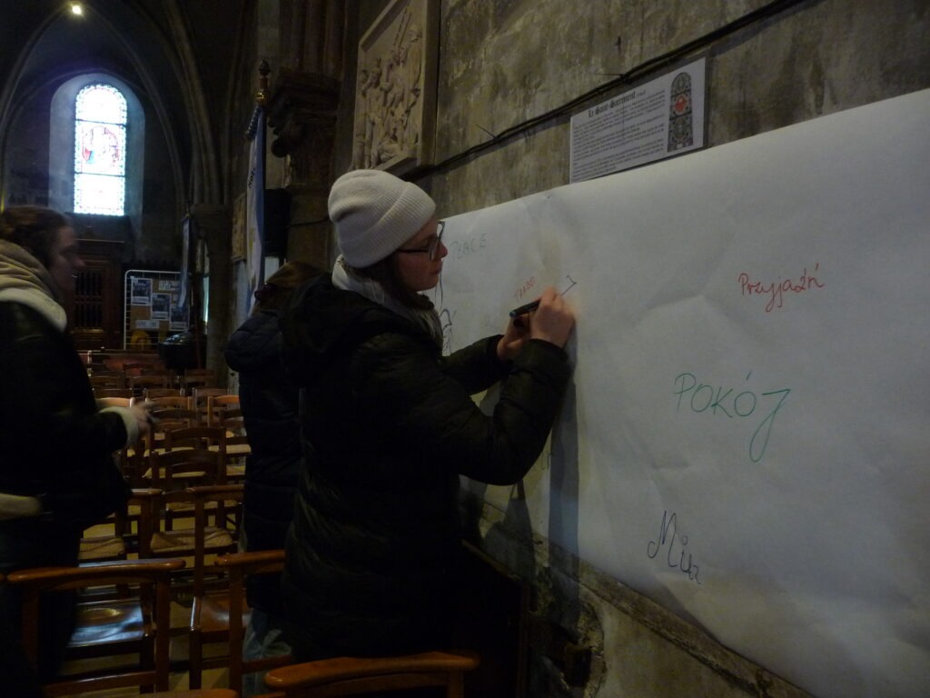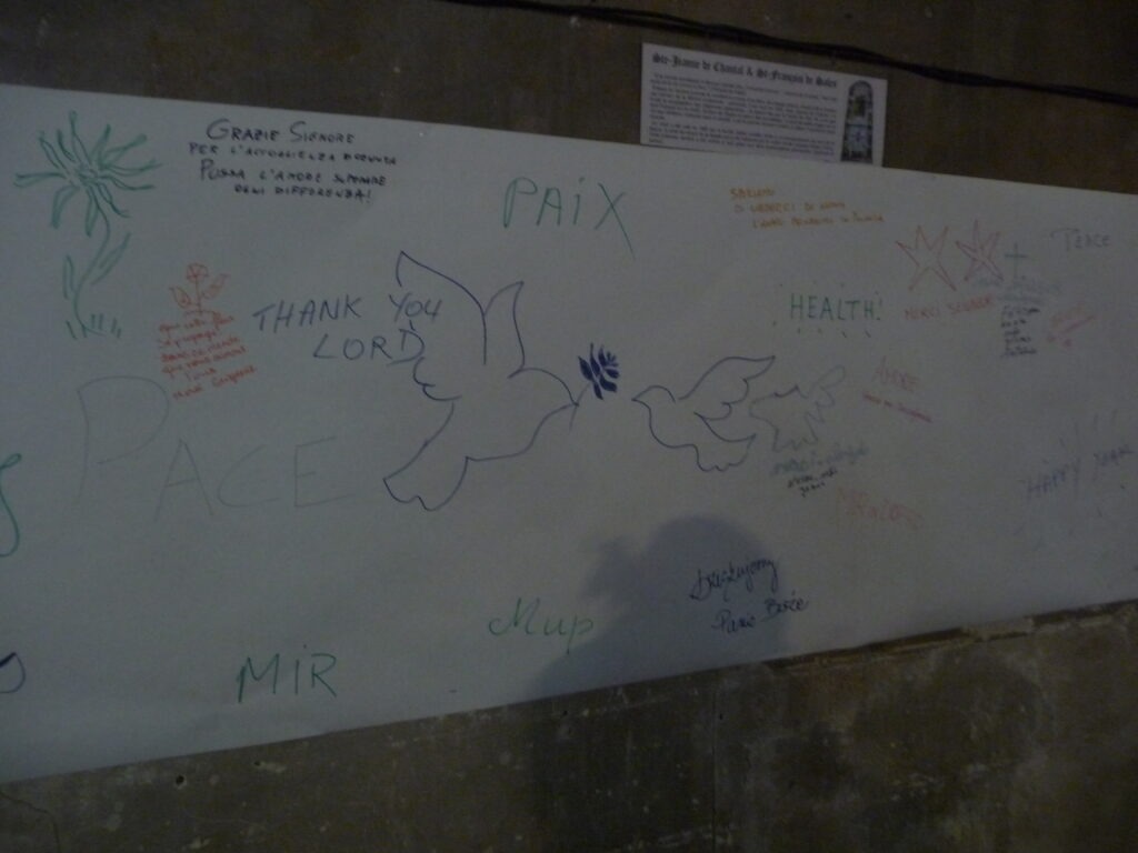 et avant de repartir dans leur pays riche de cette expérience de Taizé , un mur de voeux pour la nouvelle année durant le temps de prière à St Baudile le 1er jour de 2026