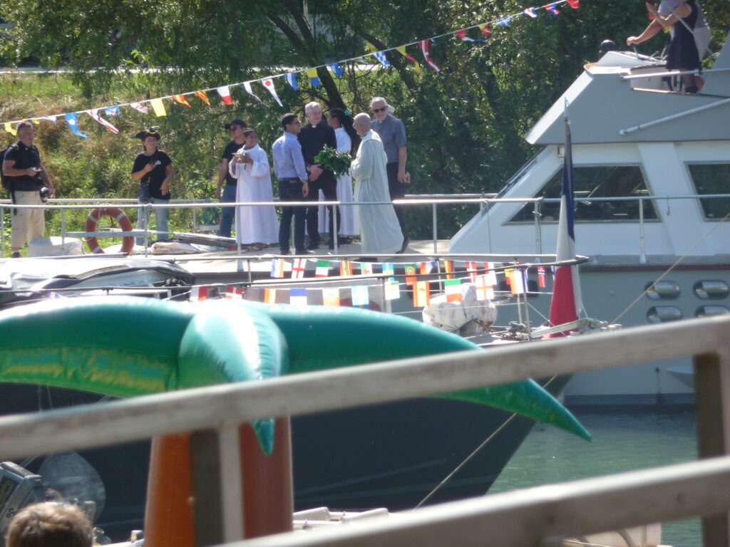 Puis la traditionnelle bénédiction des bateaux à bord de celui du capitaine Patrice, rejoint par noter maire Mr Zartoshte Bakhtiari